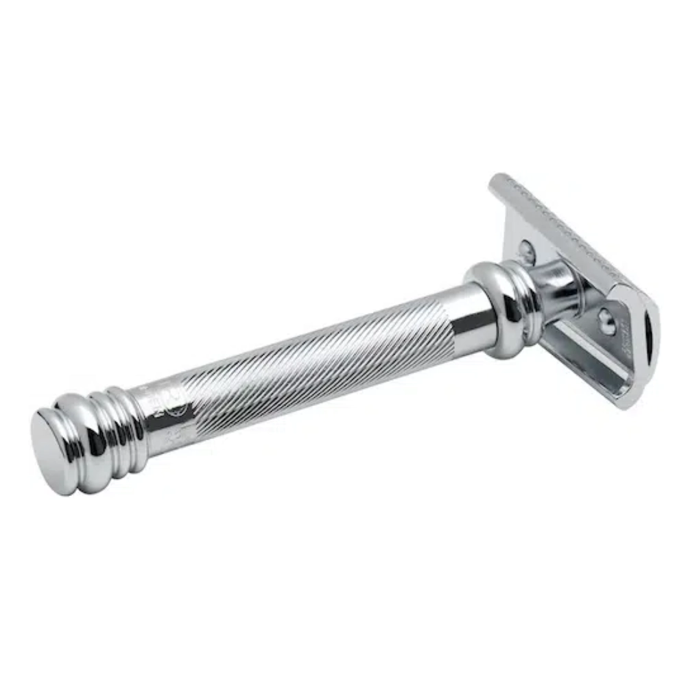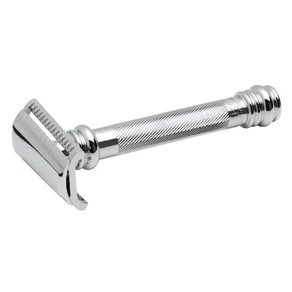 De Merkur 39C, ook bekend als de “Sledgehammer”, een veiligheidsscheermes dat zich onderscheidt door zijn schuine kop en zware constructie. Ideaal voor diegenen met zware baardgroei, biedt deze scheermes een effectieve en efficiënte scheerbeurt, zelfs bij minder frequente scheerbeurten.