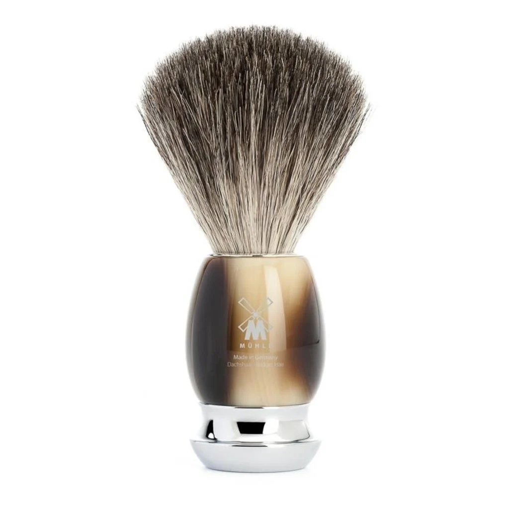 De dassenhaar van deze kwast varieert in kleur van bruin-grijs tot zwart, wat elke kwast een uniek karakter geeft. De kwasten van Mühle zijn niet alleen kwalitatief hoogwaardig maar ook zeer betaalbaar, waardoor ze een uitstekende keuze zijn voor iedereen die op zoek is naar een luxe scheerervaring zonder compromis.